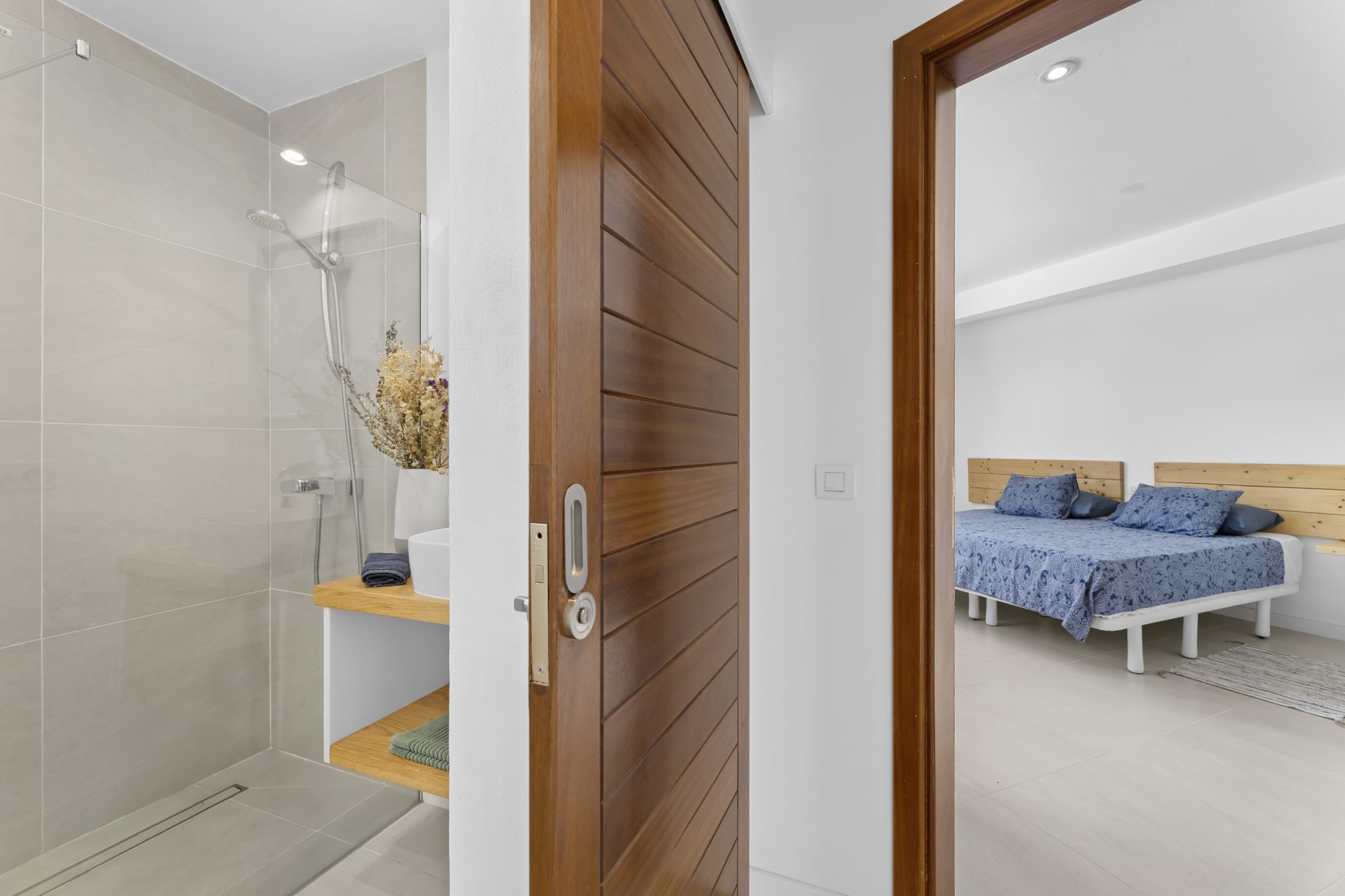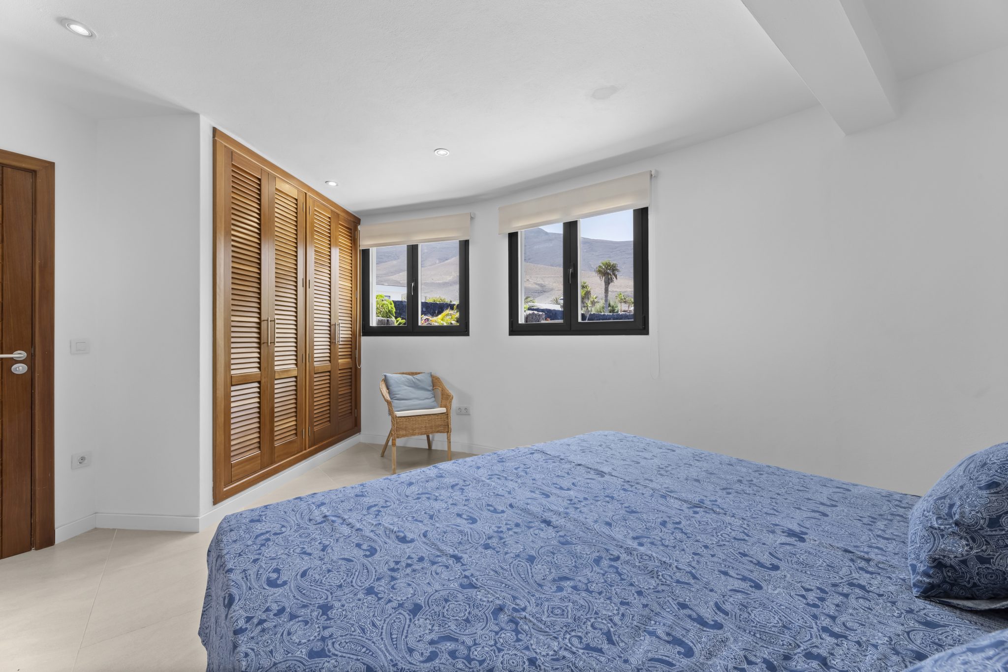 Step into our Mountain View Bedroom, your tranquil sanctuary offering a captivating panorama of Famara's El Risco and the sparkling pool below.